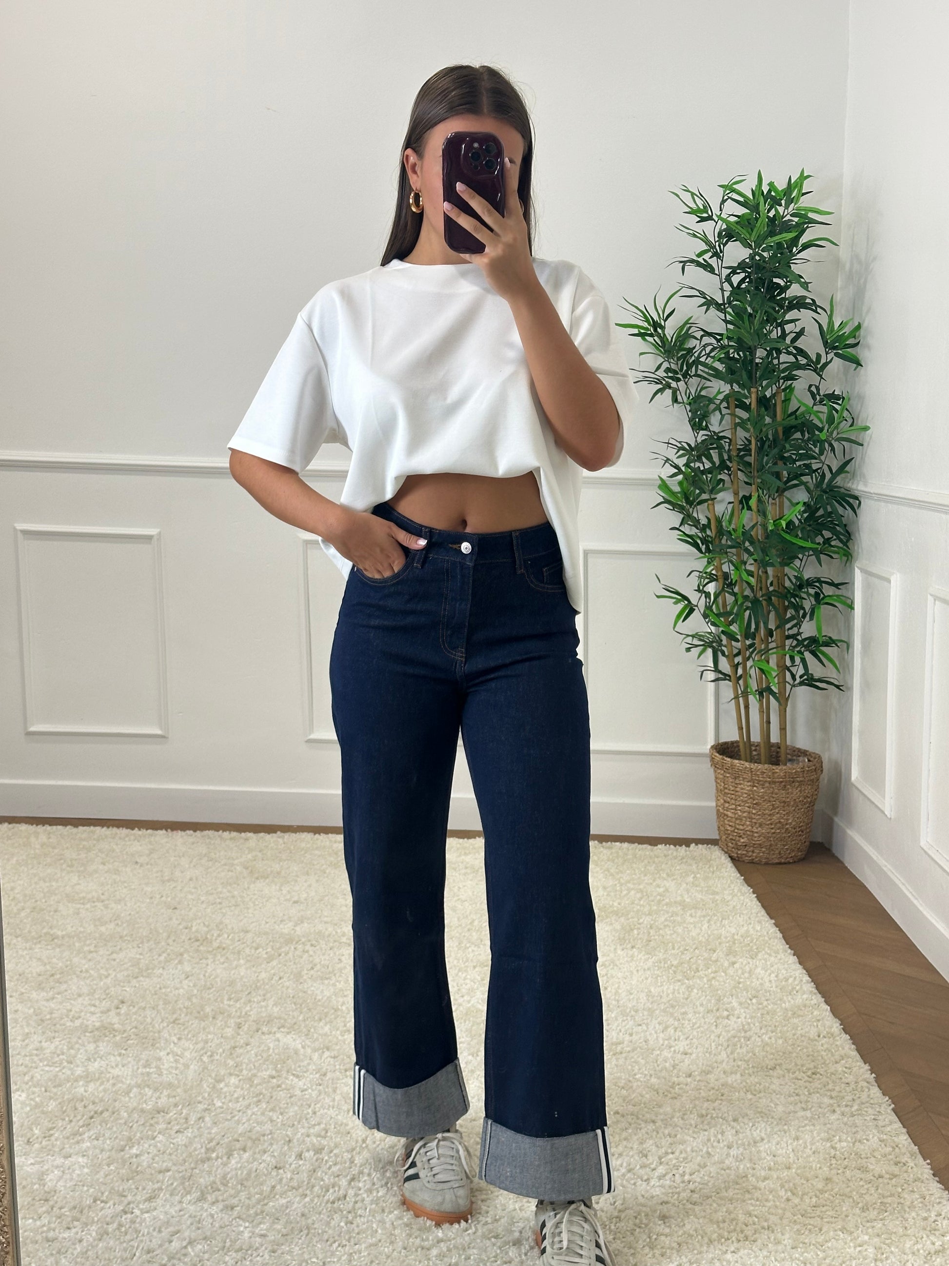 ▫ jean taille haute avec ourlet coupe large (mesure: 95cm) existe en bleu ou en gris