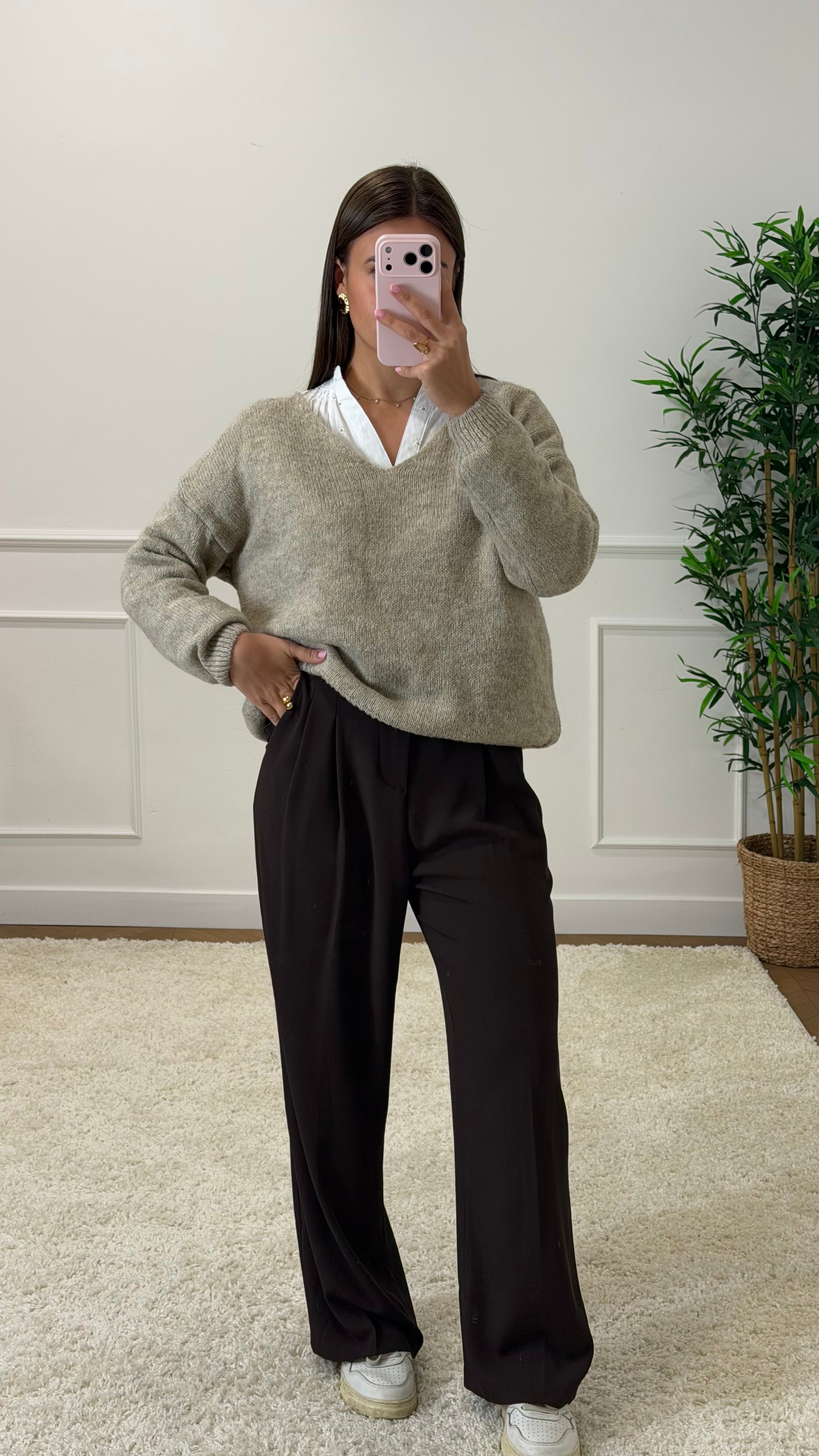 ▫ pantalon fluide, avec ceinture, taille mi-haute, coupe classique qui tombe de manière droite des anches aux chevilles, élégant et intemporel, il convient à toutes les morphologies.