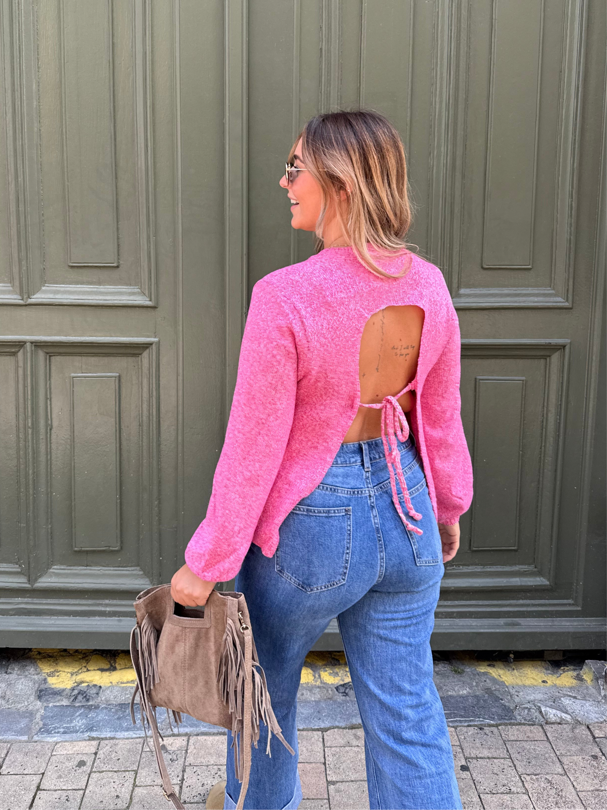 ▫pull dos nue rose, réglable dans le dos avec un noeud