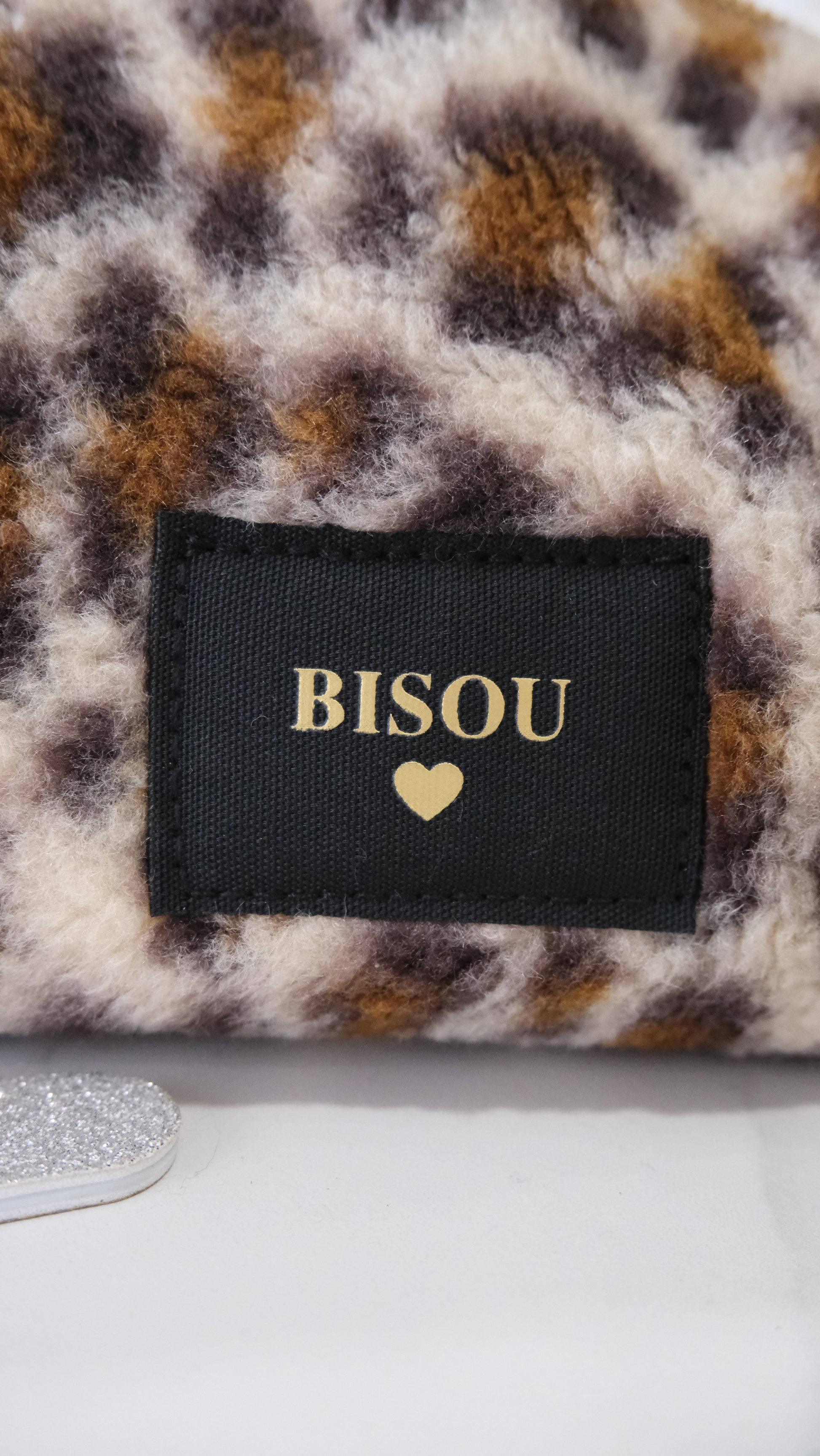 ▫ Trousse de toilette femme en polyester recyclé, motif léopard, inscription BISOU - 11*21*10CM